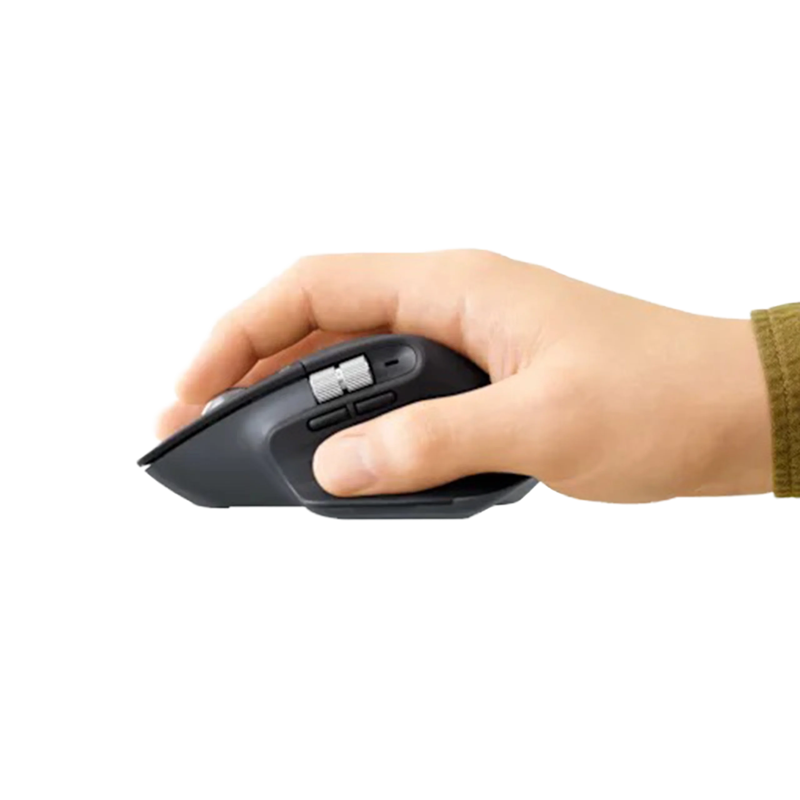 ה-MX Master 3S מעוצב באופן שמעניק תמיכה טבעית לכף היד ולזרוע, עם משטחי אחיזה נוחים ומרקם איכותי.