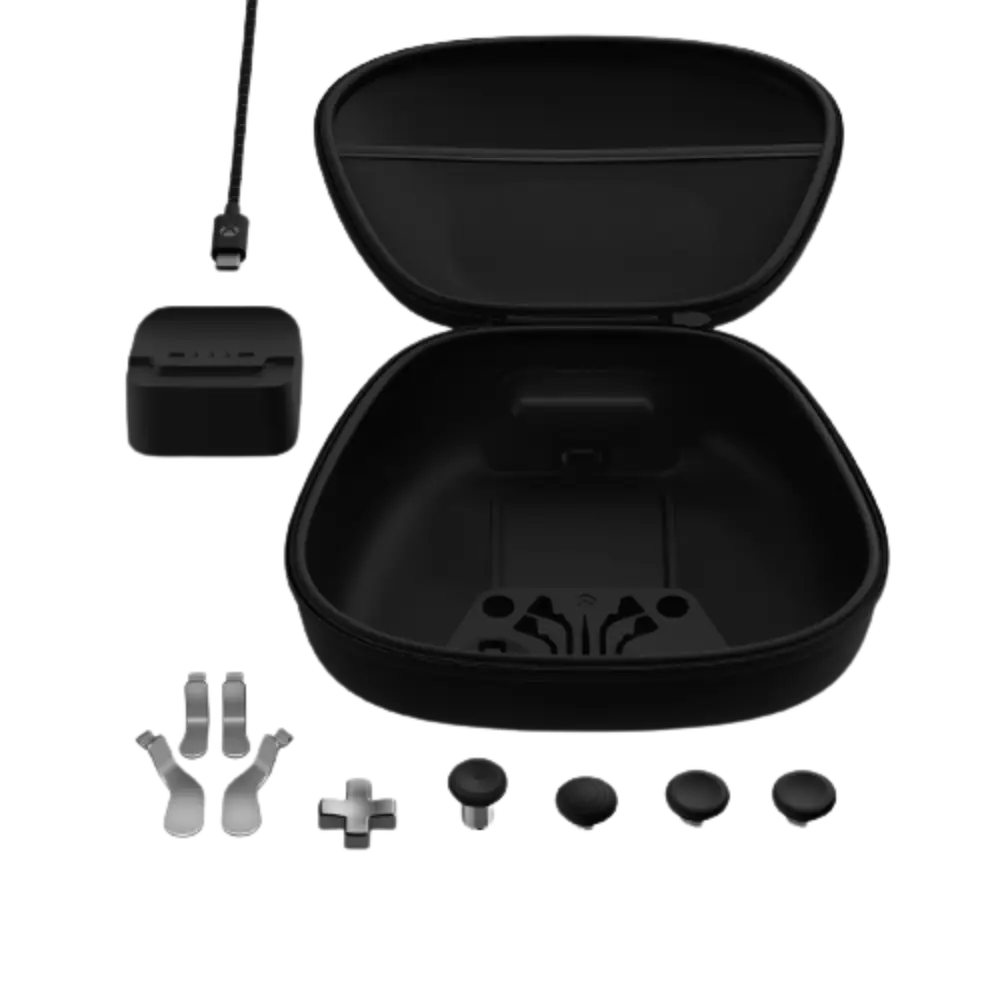 התאם אישית את הבקר האלחוטי Xbox Elite Wireless Controller Series 2 עם התצורה והרכיבים הנכונים כדי לשחרר דיוק ברמה מקצועית, עם חבילת הרכיבים המלאה, הכוללת D-pad (סטנדרטי) בר-החלפה, thumbsticks ברי-החלפה (2 קלאסיים, 1 גבוה, 1 כיפה), ופדלים (מדיום, מיני). לחזור לכוח מלא תוך הקפדה שהכל נשאר מסוגנן ומאובטח עם נרתיק הנשיאה הכלול, תחנת טעינה וכבל USB-C.