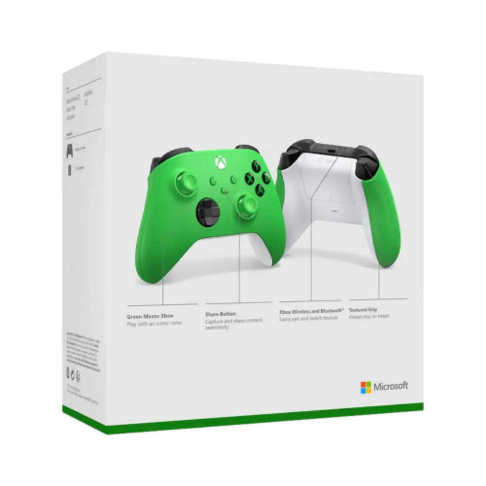 התנסו בעיצוב המודרני של הבקר האלחוטי ל-Xbox בצבע ירוק ולוסיטי, הכולל משטחים מפוסלים וגאומטריה מלוטשת לנוחות משופרת במהלך המשחק.