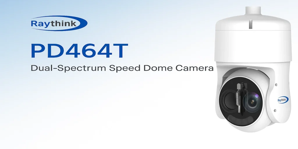 ה-PD464T היא מצלמת Dome ממונעת דו-ספקטרלית מסדרת PD4 של Raythink, המשלבת חיישן תרמי VOx לא-מקורר (גודל פיקסל 12µm, רזולוציה 640×512) עם מצלמת 4MP CMOS בגודל 1/1.8 ועדשה אופטית בזום 37×. המצלמה כוללת מדידת טמפרטורה מדויקת, ניתוח וידאו חכם עם זיהוי אש, בני אדם ורכבים, וכן פיצ’רים מתקדמים כמו סיבוב 360°, שמע דו-כיווני, ואינטגרציה מלאה עם ONVIF, RS-485 ותמיכה ב-SDK להתקנה במתחמים מאובטחים, אתרי בנייה, אזורי יערות ועוד.