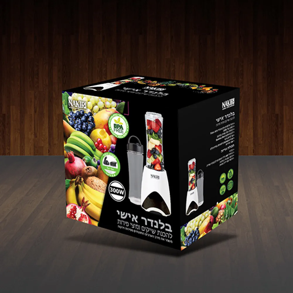 בלנדר שייקרNAKIRI 300W הכולל פיה נשלפת ו-2 מיכלי 600 מ"ל