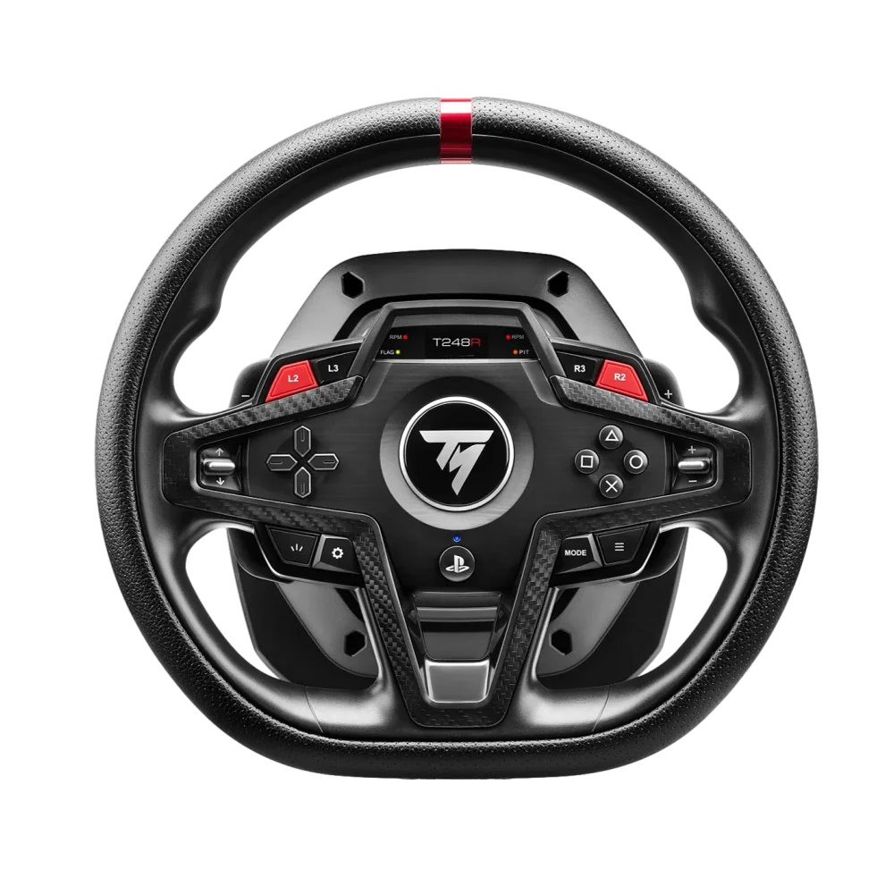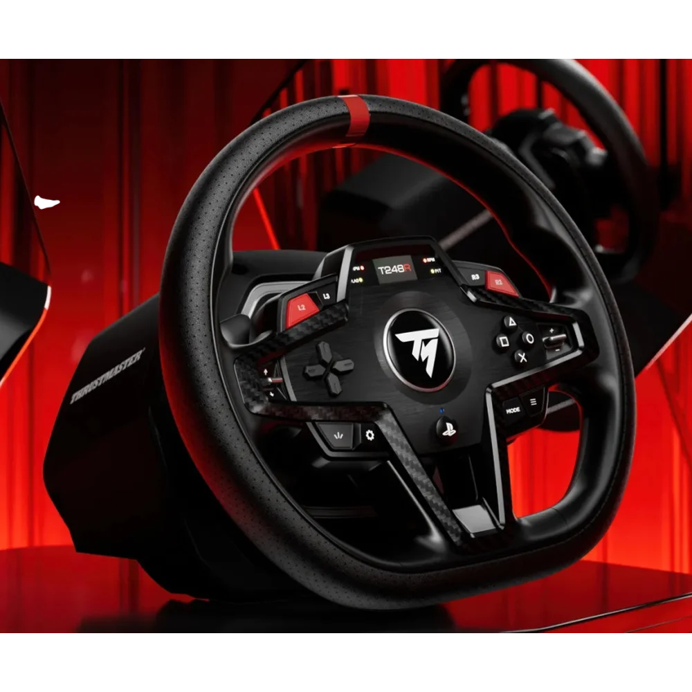 ה־T248R הוא הגה מרוצים רב־תכליתי הכול־באחד עם חישוק בקוטר 28 ס"מ, מערכת T-HD Hybrid Force Feedback עוצמתית של 3.1 N⋅m, וסט דוושות מגנטי בן 3 דוושות. ההגה מצויד במסך LCD צבעוני ונורות LED, כולל 25 כפתורי פעולה, משוטי הילוכים מגנטיים (Mag-Shift) ודואג לשליטה מדויקת בזכות חיישני Hall Effect ודוושת בלם מתכווננת. העיצוב הספורטיבי משלב עור מחורר וגימור דמוי קרבון, והוא מורשה רשמית עבור PlayStation 5 ו־Gran Turismo, לחוויית נהיגה מלאה, סוחפת ומציאותית.