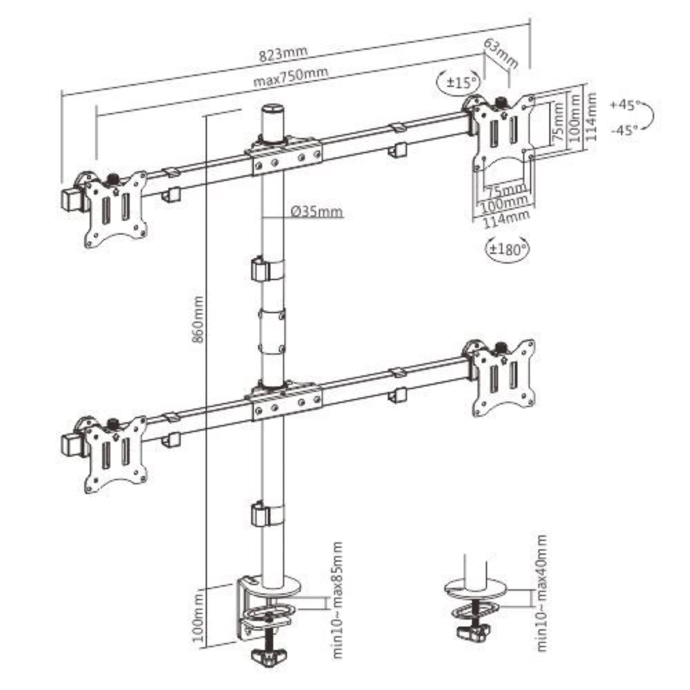 זרוע שולחנית ל4 מסכים LDT57-C04