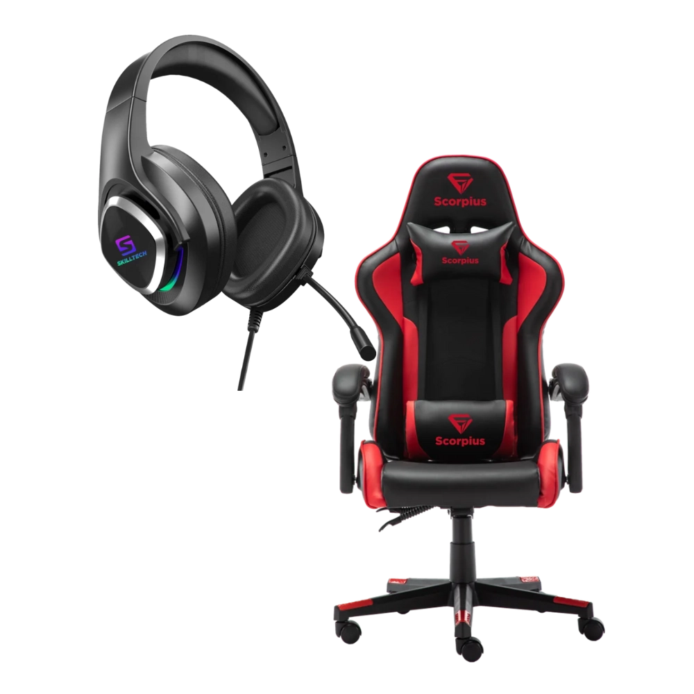 חבילת גיימינג מושב Scorpius Life אדום מבית Scorpius ואוזניות GHS11 מבית SKILLTECH
