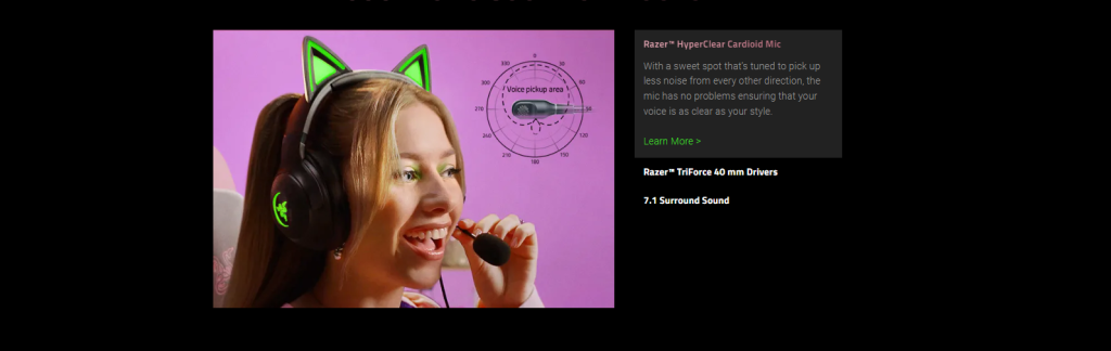 אוזניות חוט’ – RAZER KRAKEN KITTY V2 שחור