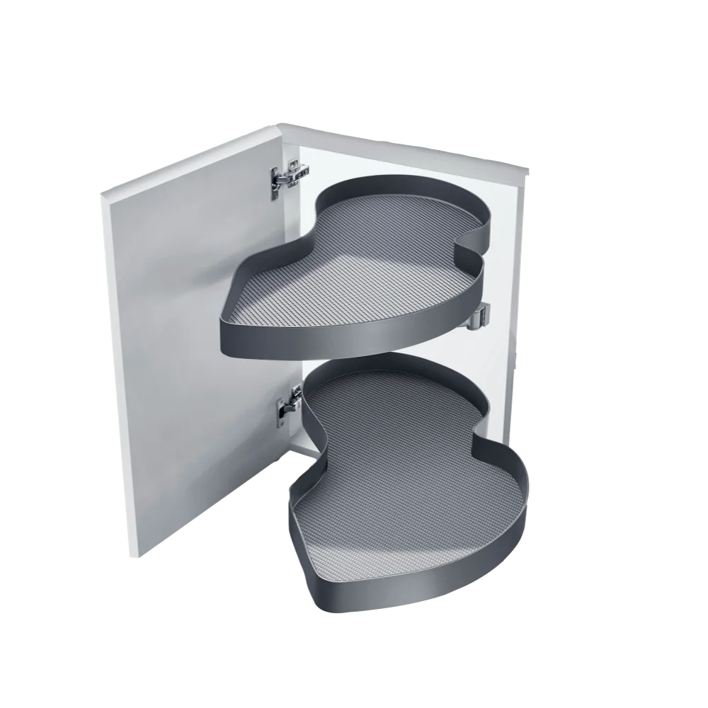 המגש הסיבובי מאפשר ניצול חכם של שטח הארון הפינתי, עם שליפה נוחה של שני המדפים אל מחוץ לארון- ללא צורך בהכנסה ידנית עמוקה או התכופפות מיותרת.