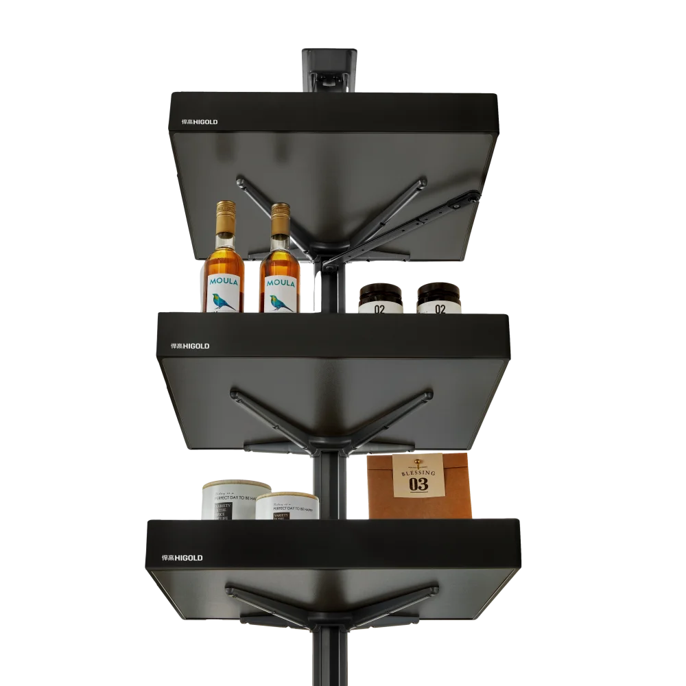המזווה כולל מספר רב של מגשים רב‑שכבתיים, הניתנים להתאמה לפי הצורך, לניצול מיטבי של שטח הארון והנגשה של כל הפריטים.