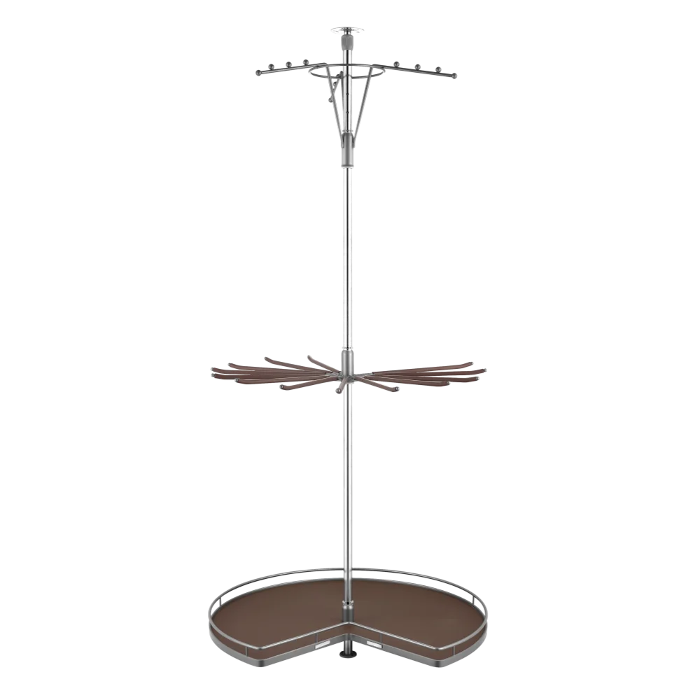מערכת אחסון פרימיום מסתובבת 360° מבית HIGOLD, המיועדת לפינות ארון בגדים. העיצוב המסתובב מאפשר גישה נוחה ואלגנטית לבגדים, תיקים ואביזרים, מנצל את חלל הפינה בצורה חכמה ומעניק סדר, נוחות ויוקרה בכל פתיחה של הארון!