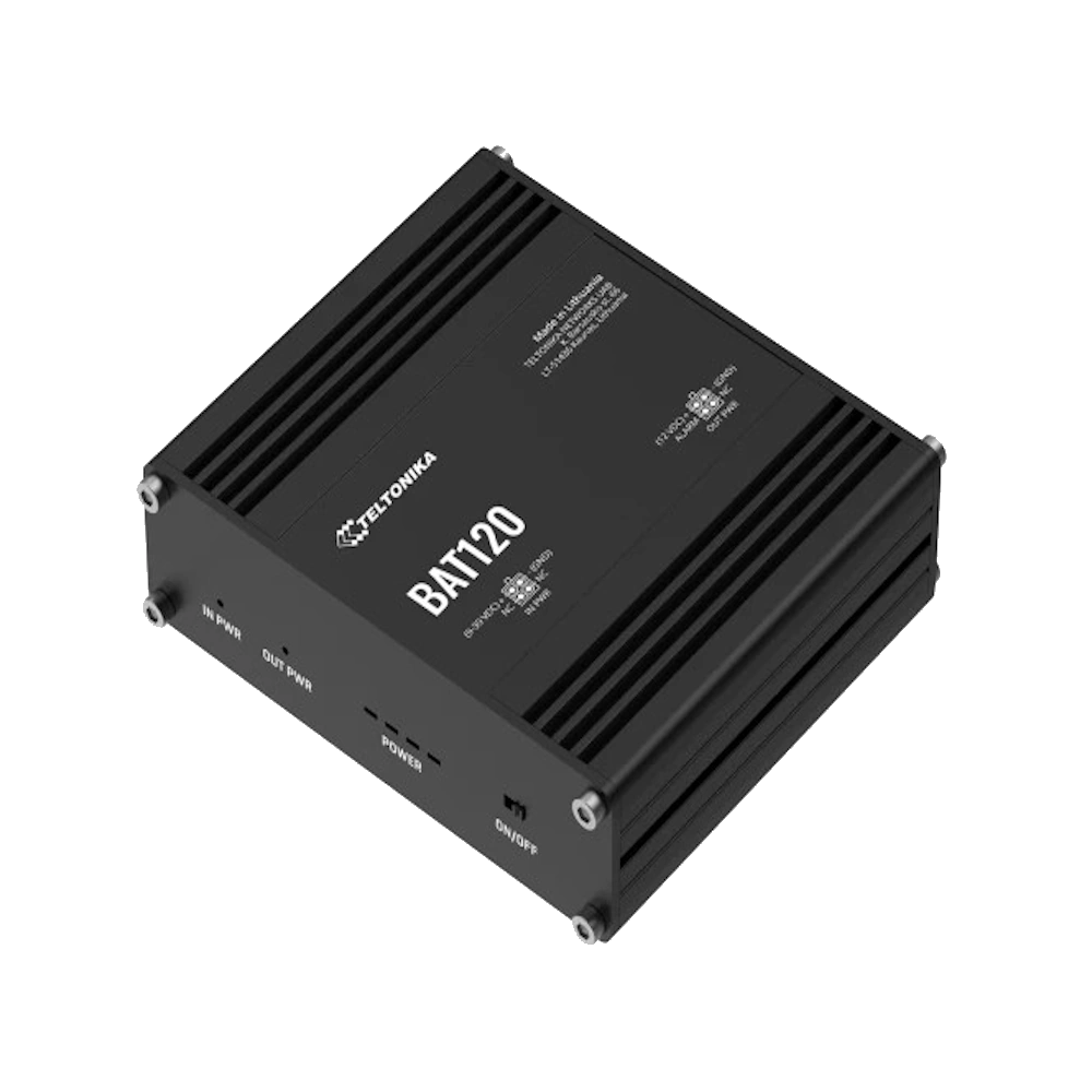 ה-Teltonika BAT120 הוא ספק כוח אל-פסק תעשייתי קומפקטי עם שני מחברי DC תעשייתיים (4 פינים), המיועד להבטיח פעולה רציפה של נתבים, Gateways ומתגים של Teltonika בעת הפסקת חשמל. כולל סוללת ליתיום-יון מובנית, הגנות מתקדמות, חיווי LED, ותמיכה בהתקנה על מסילת DIN או משטח שטוח.